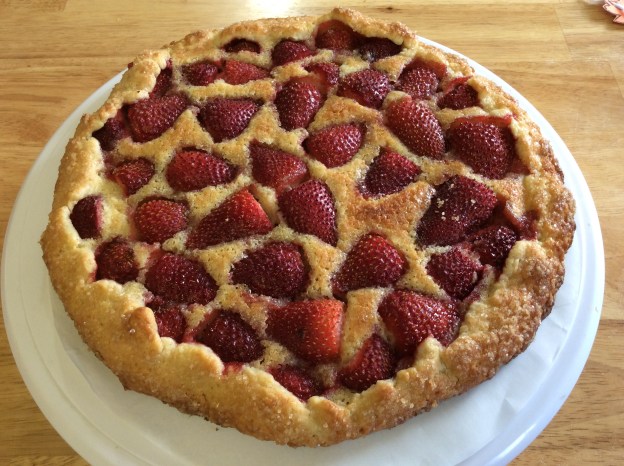 16. Arrange the strawberries, cut side down, until all the frangipane is covered.